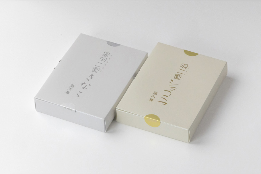 福井県産のもち米・タンチョウモチのもち粉を使ったきめ細かくなめらかな羽二重餅。羽二重ショコラはこの餅でしっとりとした生チョコを包み、パウダー状のホワイトチョコをたっぷりとまぶしてあります。チョコを包んだ餅菓子は、そのままかココアパウダーで仕上げることが多いのですが、ホワイトチョコを選んだのは、「はかなげな羽二重餅のイメージを大切にしたい」という和菓子職人の心遣いです。さらに食感や中身とのバランスも試行錯誤して、現在の形になりました。羽二重きなこも吟味した材料と自慢の自家製あんを使い、ティータイムにつまめるおしゃれな和菓子として幅広い年齢の方に喜ばれています。